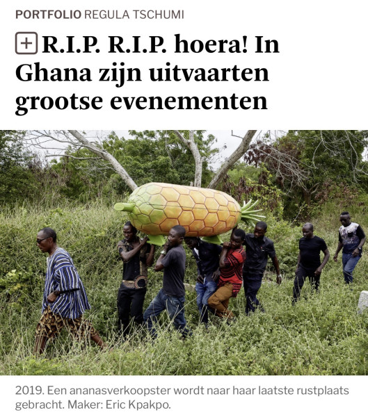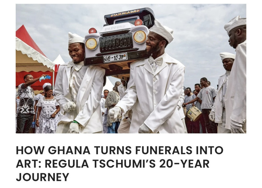 "In Teilen Ghanas wird der Tod so zelebriert wie das Leben. Eine Schweizer Ethnologin dokumentiert die Bestattungskultur des afrikanischen Landes in einem Fotobuch", Salome Woerlen, NZZ.