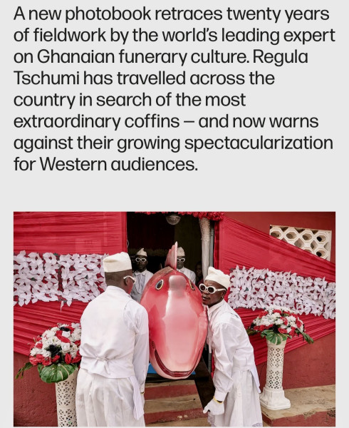 The Guardian about Regula Tschumi's new book Buried in Style. Artistic Coffins and Funerary Culture in Ghana-